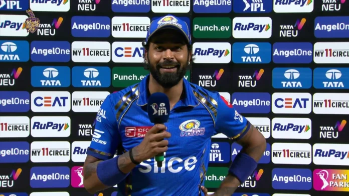 MI மற்றும் KKR அணிகளுக்கு இடையிலான போட்டியில், நீண்ட காத்திருப்புக்குப் பிறகு கிடைத்த வெற்றியைக் கண்டு கேப்டன் ஹர்திக் பாண்டியா உணர்ச்சிவசப்பட்டார்
